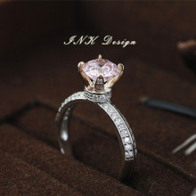 INK珠宝 925银 仿真钻石 纯银女锆石八心八箭粉钻戒指豪华款指环