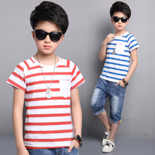 童装男童夏装短袖T恤2017新款5儿童6韩版7男孩8条纹9岁休闲上衣潮