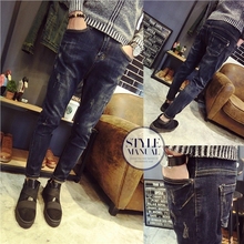2017春季新款小码复古牛仔小脚裤微垮哈伦裤27码瘦版小号男生裤子