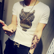 2017夏季圆领短袖小码男装T恤猫头鹰S码潮男半袖160小个子打底衫