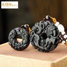 慈元阁开光饰品黑曜石财运貔貅吊坠男女款水晶平安扣项坠吉祥礼物