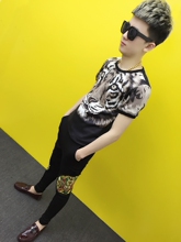 春季短袖T恤快手红人同款男精神社会小伙修身老虎头印花短袖T恤