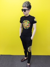 2017新款短袖快手红人同款男精神社会小伙修身情侣龙袍刺绣短袖男
