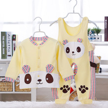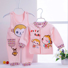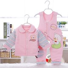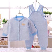 婴儿薄棉衣服春装男女宝宝背带裤纯棉袄三件套装新生儿春秋装外套