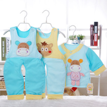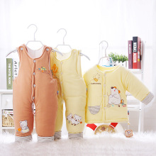 婴儿薄棉衣套装三件套夹棉男宝宝春装背带裤0-1岁薄款女幼儿衣服
