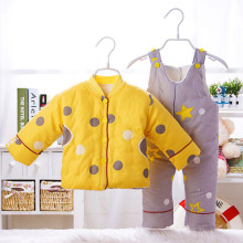 婴儿薄棉衣套装薄款春秋冬季男宝宝春装外套背带裤新生儿衣服夹棉