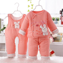 冬装加厚婴儿棉衣套装新生儿衣服男女宝宝棉袄三件套双背带裤外套