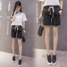 牛仔短裤女夏 2017新款中裤松紧腰大码胖mm弹力修身五分裤热裤女