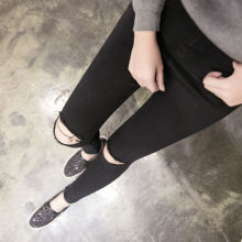 2017春季新款高腰膝盖破洞牛仔裤女秋冬显瘦小脚铅笔裤九分裤女潮