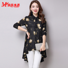 雪纺衫女2017夏装新款中长款长袖衬衣防晒衫宽松收腰A字版衬衫裙