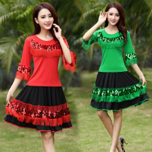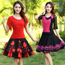 2017广场舞服装新款套装夏季中老年舞蹈服短袖上衣表演舞蹈服裙子