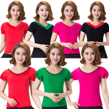 广场舞服装上衣V领短袖舞蹈服装春夏 成人拉丁舞广场舞练功服女夏