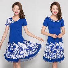 广场舞服装新款套装2017春夏中老年舞蹈服成人拉丁舞青花瓷短袖女