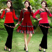 广场舞服装新款套装2016秋冬舞蹈服装中老年金丝绒长袖裙裤加绒女