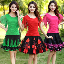 柏芙莲 广场舞服装春季套装新款 网纱上衣短袖舞蹈跳舞服春夏款裙