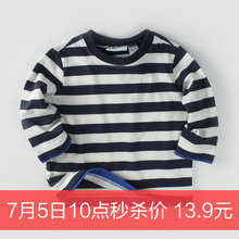 捣蛋家儿童男宝宝婴儿春秋条纹纯棉T恤 男童秋装上衣童装