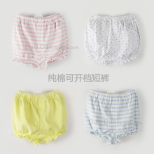 内销品牌婴儿全棉可开裆短裤 男女宝宝夏季纯棉短裤花边灯笼短裤