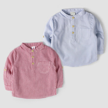 捣蛋家男女宝宝春夏两用袖竖条纹立领衬衫 婴儿棉麻衬衣儿童春装