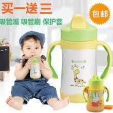 包邮贝儿欣宝宝不锈钢带背带吸管保温水壶把手吸管保温杯儿童水杯