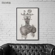 简优映画 超现实手绘 黑白抽象装饰画人物现代客厅墙壁挂画竖幅