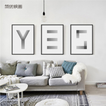 简优映画原创设计英文YES黑白三联画大幅字母画现代极简北欧组合