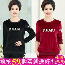 中老年妈妈装女装秋装金丝绒套装金丝绒天鹅绒两件套长袖运动套装