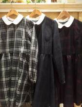 E@rth Music 16春 甜美气质 学院风娃娃领元宝领格纹格子连衣裙