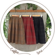E@RTH MUSIC 新品~ 甜美气质 学院风格子格纹过膝长裙伞裙半身裙