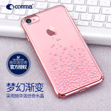 comma珂玛苹果7plus玫瑰金手机壳奢华水钻7p透明保护壳女款硬壳