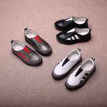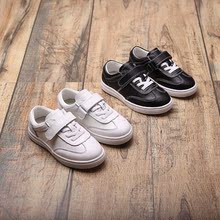 2017春季新款女童板鞋百搭小白鞋真皮休闲鞋一脚蹬黑白色男童皮鞋