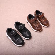 2017春季新款男童真皮运动鞋黑色单鞋休闲鞋冲孔透气女童板鞋纯皮