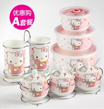 创意hello kitty凯蒂猫卡通可爱儿童陶瓷米饭碗盘筷勺餐具套装