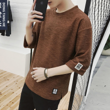 男装五分袖T恤夏季宽松大码文艺百搭体恤衫港风圆领纯色半袖tee潮