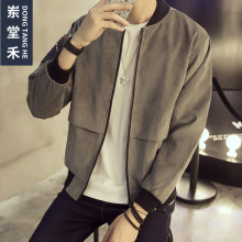 岽堂禾秋季男士大码文艺开衫外套韩版修身小清新纯色加大夹克衫潮