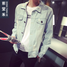 岽堂禾15秋冬复古男士牛仔夹克韩版修身牛仔外套潮茄克青年jacket