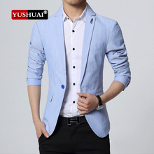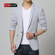 御帅春季青年浅色亚麻小西服男薄款外套 韩版修身休闲西装单西潮