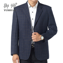 御帅春季中年男士格子休闲西装外套中老年男装爸爸装春装上衣单件