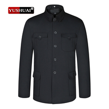 御帅 青年男士中山装外套秋冬款 男修身韩版休闲中华立领小西装