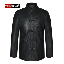 御帅皮唐装男长袖中老年人龙刺绣皮衣 老人爷爷秋装盘扣上衣外套