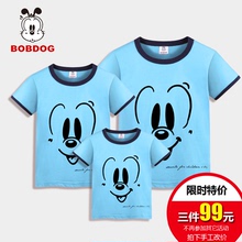 正品巴布豆夏季亲子装纯棉短袖T恤夏装家庭装一家三口全家服百搭