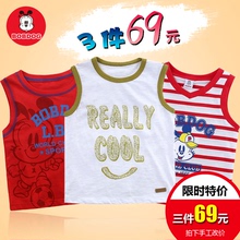 巴布豆品牌童装男童V领背心婴童无袖T恤衫男孩纯棉鸡心领夏装2017