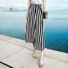 时尚休闲2017新款宽松显瘦松紧腰黑白竖条纹高腰阔腿裤九分女夏潮