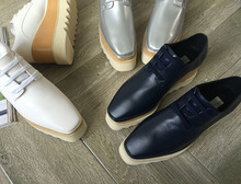 真皮女单鞋子纯色百搭松糕跟方头女鞋子平底高跟女鞋子