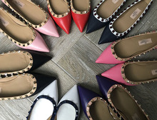 尖头细跟高跟铆钉鞋欧洲站时尚休闲女鞋