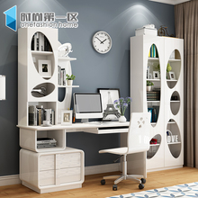 书桌书架书柜组合 简约现代卧室家用台式电脑桌写字台办公桌子