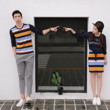 2017新款秋装t恤女长袖情侣装两件套女裙韩国版新品时尚撞色男T恤