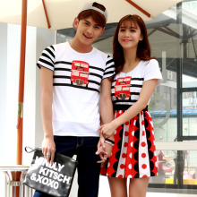侣诺情侣装夏季新款 韩版宽松短袖圆领男t恤 女装连衣裙