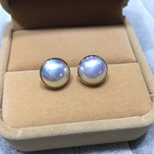 海水马贝珍珠耳钉 无瑕光12-13MM特大海水马贝炫彩光泽