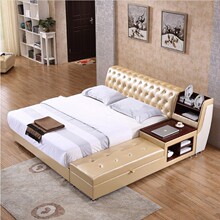 宅美居床 皮床现代真皮床1.8米双人床皮艺床软体床榻榻米储物婚床