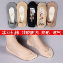 春夏季无痕纯棉冰丝船袜两圈硅胶防滑超浅口隐形薄袜子防脱袜套女